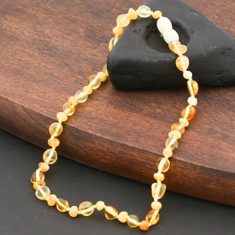Kehribar diş kolyesi bebeklerde ortalama 4.aydan itibaren kullanılmaya başlar. Ağız suyu akıntısı, ağrı,iştahsızlık, ve uykusuzluk gibi diş çıkarma dönemine bağlı oluşan şikayetlerde çocukların diş dönemini daha rahat geçirmesini sağlar.Ten teması ve ten ısısı ile etki eder. Kehribar kolye bölgesel etki eder. İpek iplikten yapılmıştır, her boncuğun arası ayrı ayrı düğümlüdür. Kehribar kolyelerin arkasında gizli plastik vidalı klips vardır. Kehribarın etkisini göstermesi kişinin bünyesine ve büyüme atağına bağlı olarak 24 ila 72 saat  arasında zaman almaktadır. Kehribar kullanıldıkça ve tena temas ettikçe etkisini gösterir. Bebeklerde 0-3 yaş arası ortalama uygun standart ebat 32cm-34cmdir. Kolyeler herkes için en gözde süsler arasındadır, sanıyoruz bu süs merakı küçük yaşta başlıyor. Küçük yaşlarda süse merak salan birbirinden süslü ve şık takı modellerini sunuyoruz. Kehribar şıklığından ödün vermeyen küçüklerin severek kullanacakları bir aksesuar olacaktır. Ürünlerimizin tamamı el emeği ile üretilmiştir ve değerli taşlar nedeniyle ürün ağırlığında ± %10 sapma olabilmektedir.
