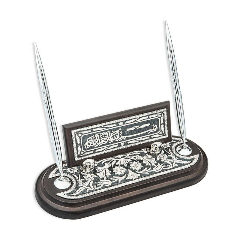 Gümüş Çiçek Desenli Besmele Masa Üstü Kalemlik