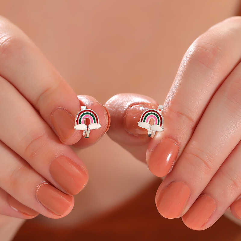 Gökkuşağı; düşmekte olan yağmur damlacıklarında güneş ışınlarının kırılıp yansımasıyla gökyüzünde oluşan yedi renkli, kemer biçimindeki görüntüdür. Gökkuşağında görülen yedi renk; kırmızı, turuncu, sarı, yeşil, çivit mavisi, menekşedir. Sizde sevdiklerinizi farklı hediyelerle sevindirmek istiyorsanız gökkuşağı küpeyi tercih edebilirsiniz. Gümüş gökkuşağı çocuk küpe 925 ayar gümüşten imal edilmiştir. Gümüş üzerine rodyum kaplama yapılmıştır. Rodyum kaplama yapılan gümüş çocuk küpe modelleri parlaklığını uzun süre muhafaza eder ve oksitlenmesi gecikir. Gümüş gökkuşağı çocuk küpe el emeği ile üretilmiştir. Gümüş ve değerli taşlar nedeniyle belirtilen ortalama ürün ağırlığında ± %10 sapma olabilmektedir.