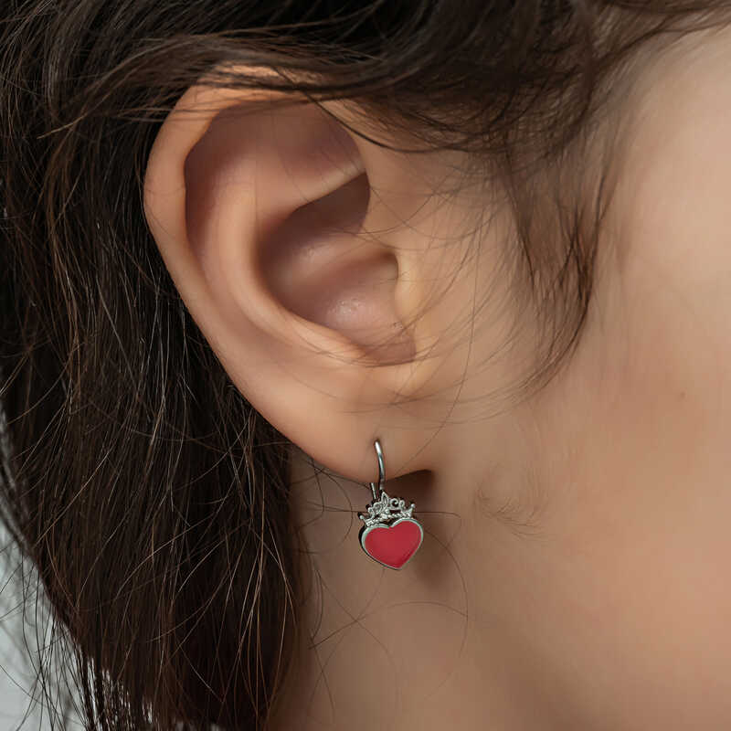 Gümüş Kırmızı Kalp Sallantılı Çocuk Küpe