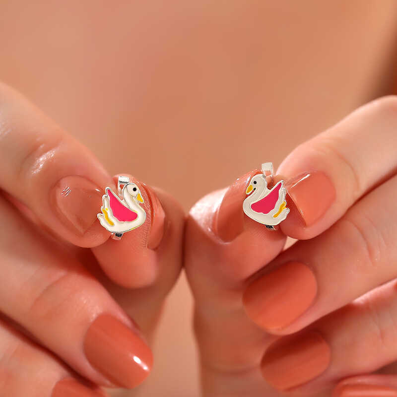 Dünya tatlısı sıcacık sevimli dostlarımız hayvanları sizler için tasarladık. Bu ışıl ışıl ve farklı tasarımıyla bu şık küpe; 925 ayar gümüşten imal edilmiştir. Gümüş üzerine rodyum kaplama yapılmıştır. Rodyum kaplama yapılan gümüş çocuk küpeleri parlaklığını uzun süre muhafaza eder, oksitlenmesi gecikir. Tüm gümüş küpelerde olduğu gibi gümüş kuğu çocuk küpenin de tamamı el emeği ile üretilmiştir. Gümüş ve değerli taşlar nedeniyle belirtilen ortalama ürün ağırlığında ± %10 sapma olabilmektedir.