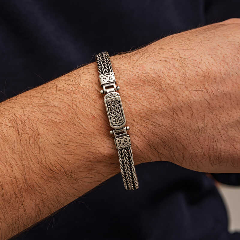 Gümüş Oksitli Desenli Erkek Bileklik