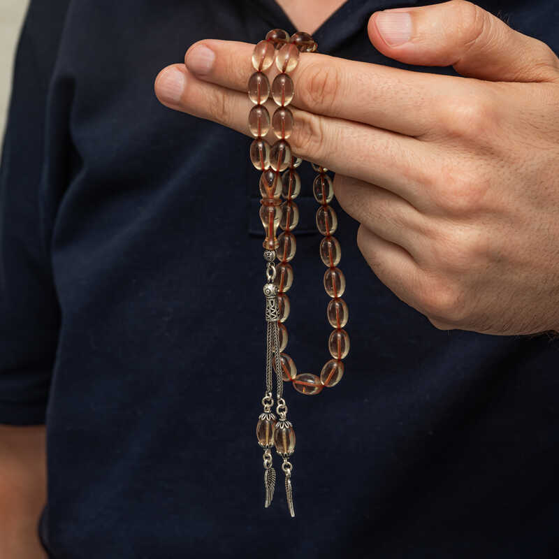 Gümüş Püsküllü Ateş Kehribar Tesbih