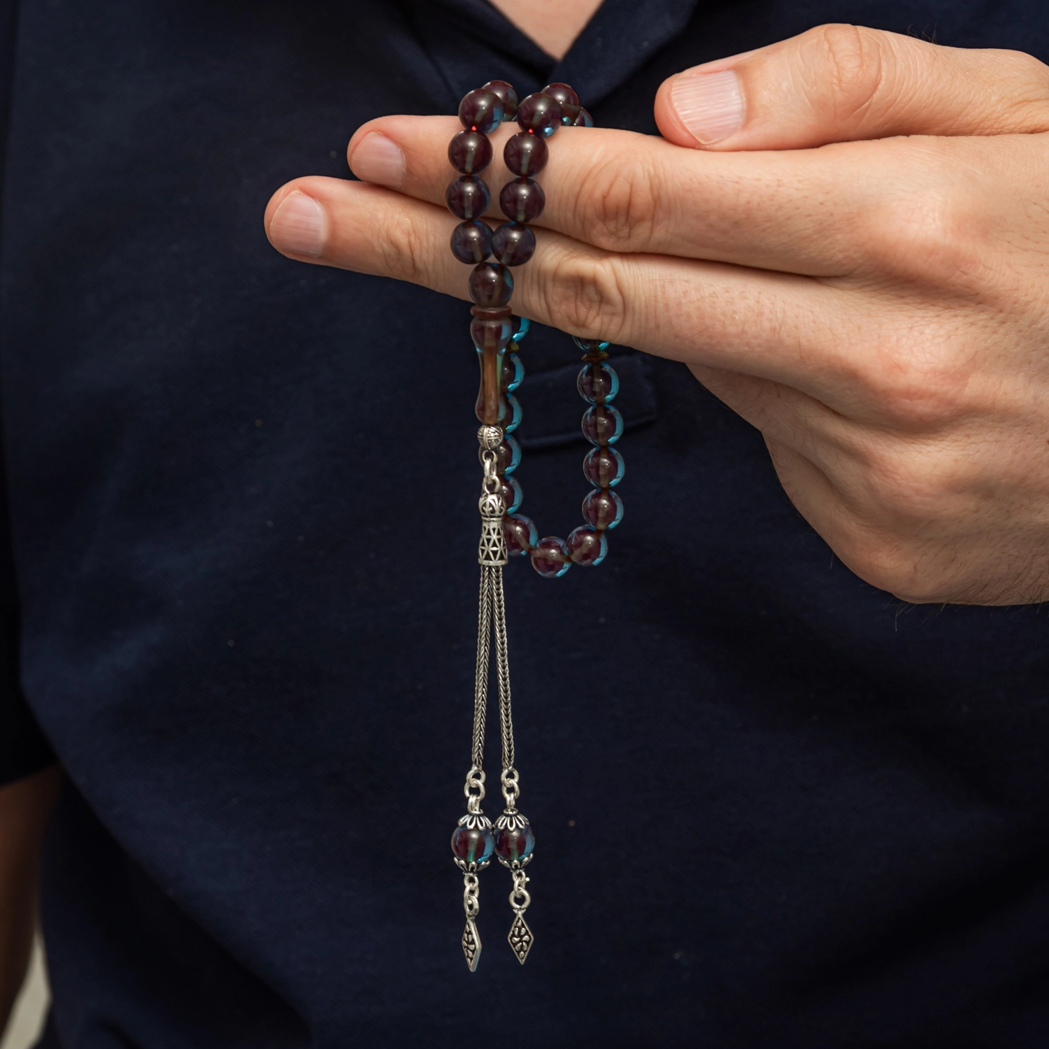 Not : Tesbih gümüş püskül uçları farklı model gönderilmektedir.