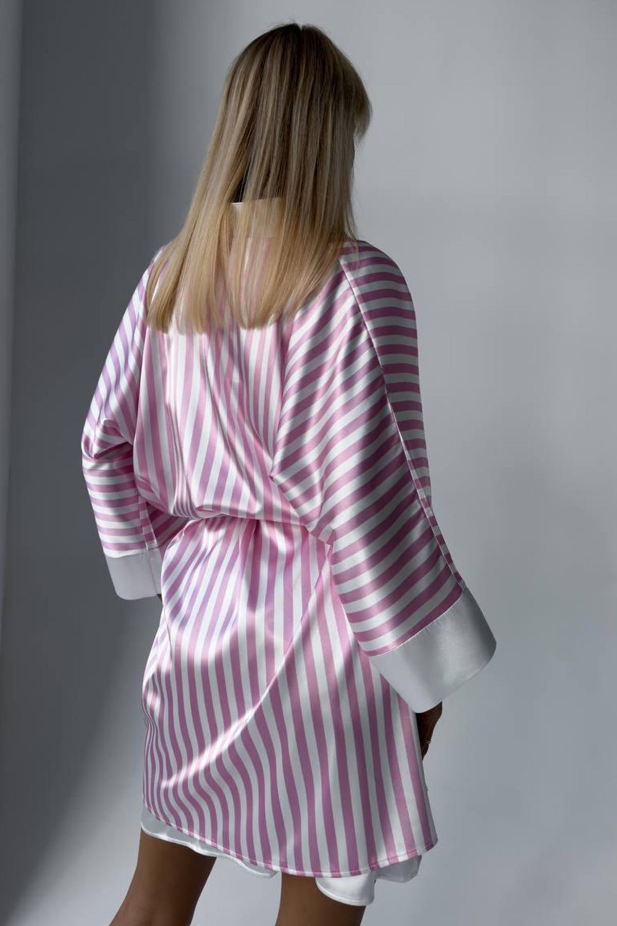 Klasik Pudra Askılı Gecelik & Pembe Çizgili Sabahlık – Zarafet ve Konforun Mükemmel Uyumu
