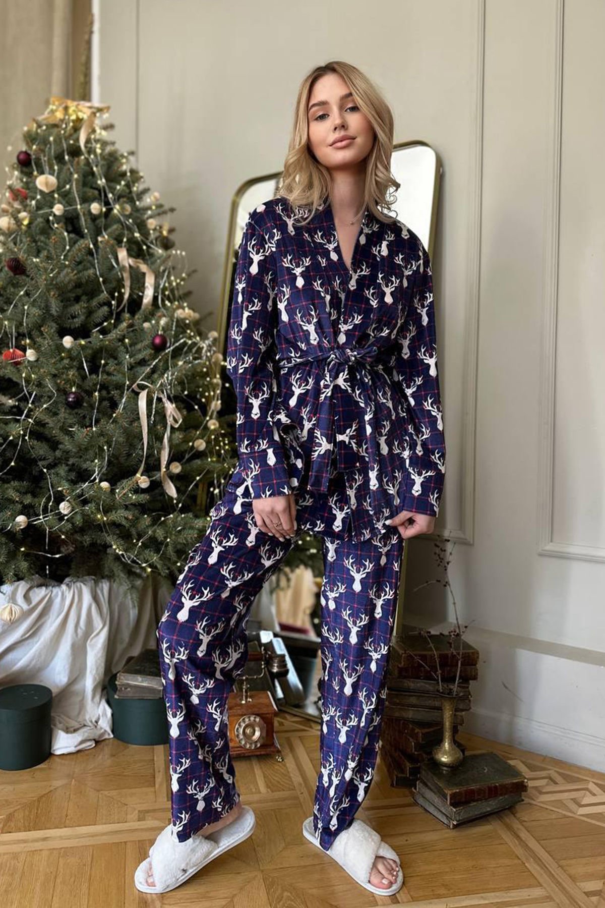 Rahatlığın ve şıklığın birleşimi olan mor zemin üzerine beyaz geyik desenli kadife ikili takım, soğuk günlerde sıcak bir dokunuş sunar. Zarif tasarımı ve kadifenin lüks hissiyle ev giyiminize sofistike bir hava katar. Yumuşacık dokusu, gün boyu rahatlık sağlarken, dikkat çekici geyik deseni stilinizi tamamlar.