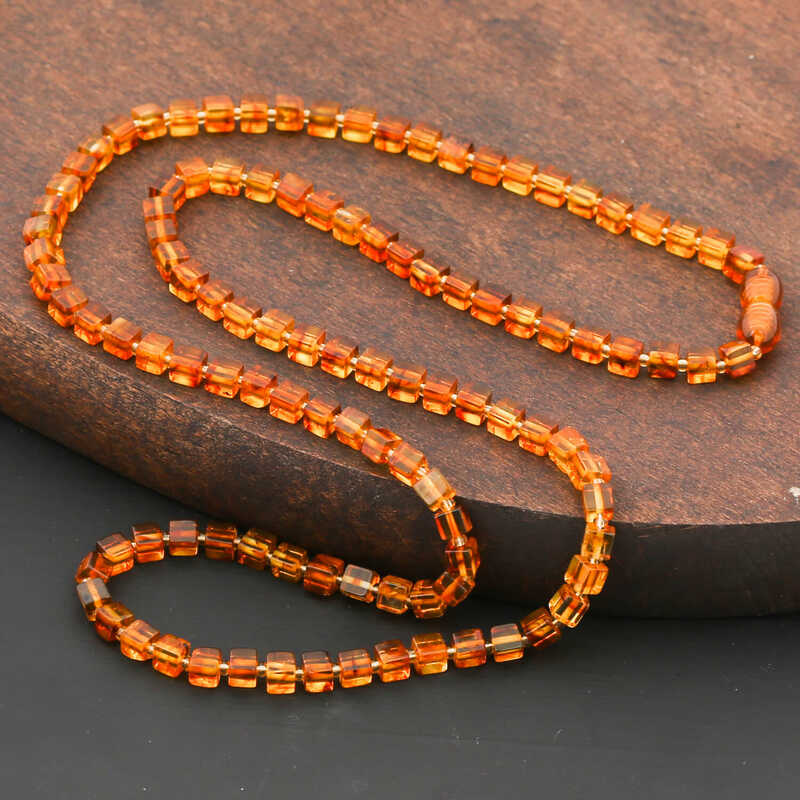 Kehribarın hem fiziksel hem metafiziksel etkisi vardır. Aynı zamanda kehribar para taşı olarak bilinir. Bereketi arttırdığına inanılır. Kehribar kolye olarak kullanıldığında astım, alerji, guatr, tiroid gibi şikayetlerde gerileme sağlar. aynı zamanda kehribarın ağrı kesici etkisi bel ağrısı, baş ağrısı migren gibi şikayetlere iyi gelir. Kehribar bileklik eklem ve romatizmal ağrılarda etkilidir. Aynı zamanda negatif enerjilere karşı koruyucu etki eder. Kehribar aynı nazar boncuğu gibi etki sağlar. Ten teması ve ten ısısı ile etki eder. Kehribar kolye bölgesel etki eder. İpek iplikten yapılmıştır, her boncuğun arası ayrı ayrı düğümlüdür. Kehribar kolyelerin arkasında gizli plastik vidalı klips vardır. Kehribarın etkisini göstermesi kişinin bünyesine ve büyüme atağına bağlı olarak 24 ila 72 saat  arasında zaman almaktadır. Kehribar kullanıldıkça ve tena temas ettikçe etkisini gösterir. Yetişkinlerde ortalama uygun standart ebat 65cm-70cmdir. Kolyeler herkes için en gözde süsler arasındadır. Kehribar şıklığından ödün vermeyen Yetişkinlerin severek kullanacakları bir aksesuar olacaktır. Ürünlerimizin tamamı el emeği ile üretilmiştir ve değerli taşlar nedeniyle ürün ağırlığında ± %10 sapma olabilmektedir.